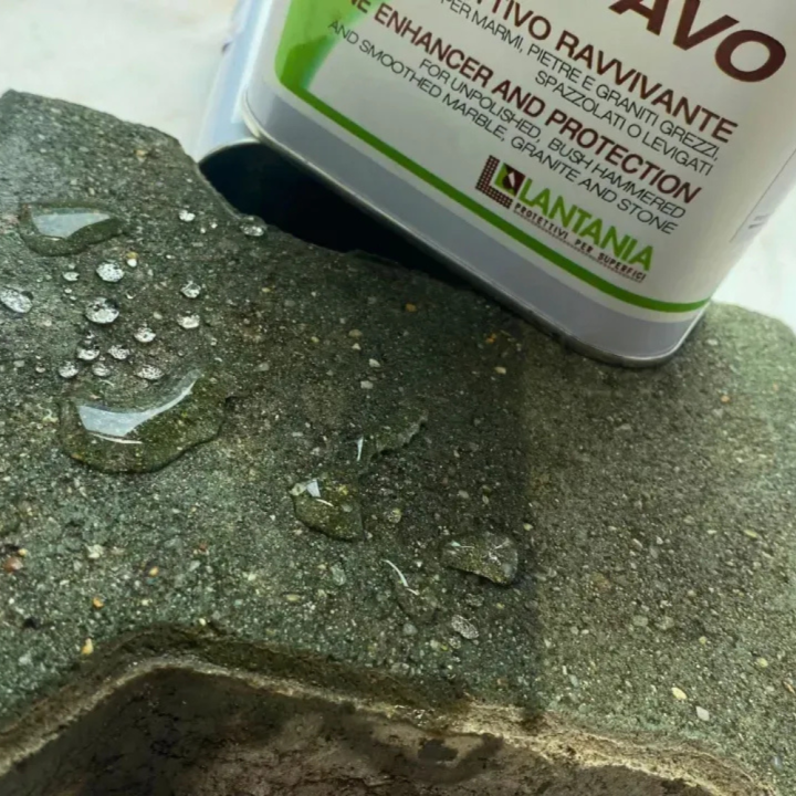 AVO actioneaza ca un scut invizibil. Odata aplicat, produsul patrunde in capilaritatile pietrei, creand o bariera impotriva infiltratiilor de apa si a murdariei.